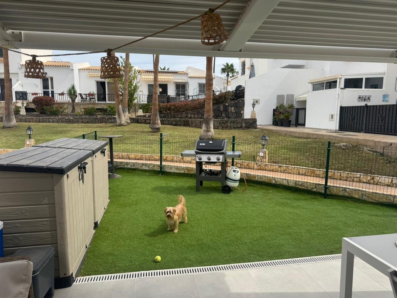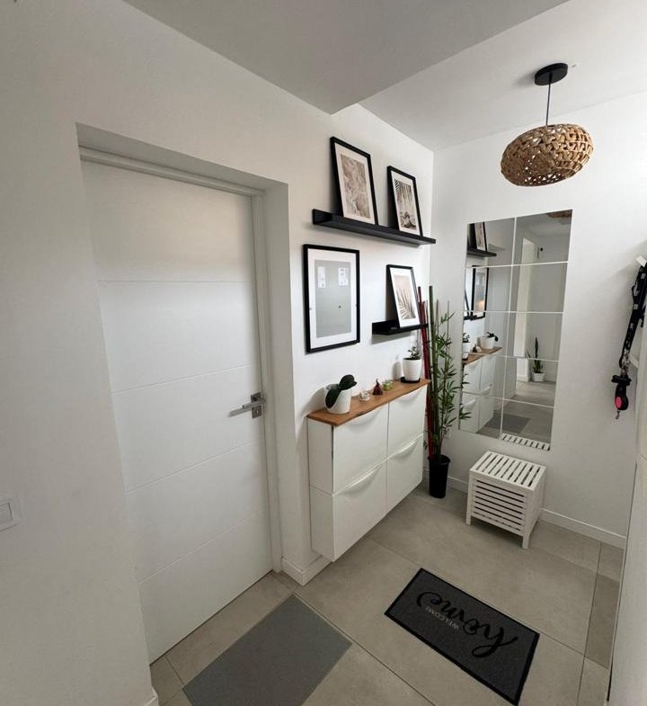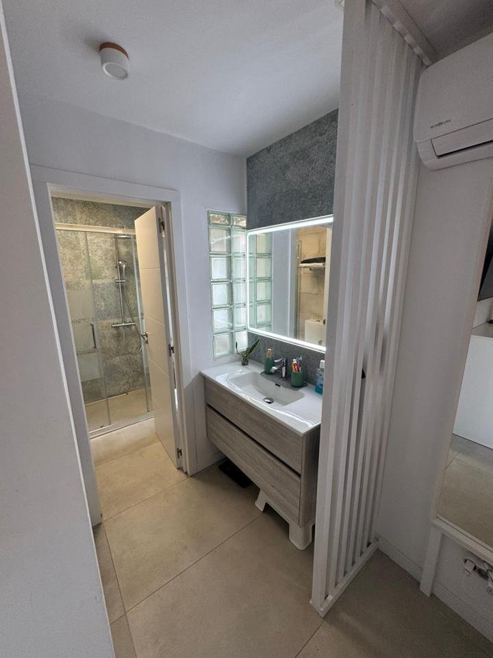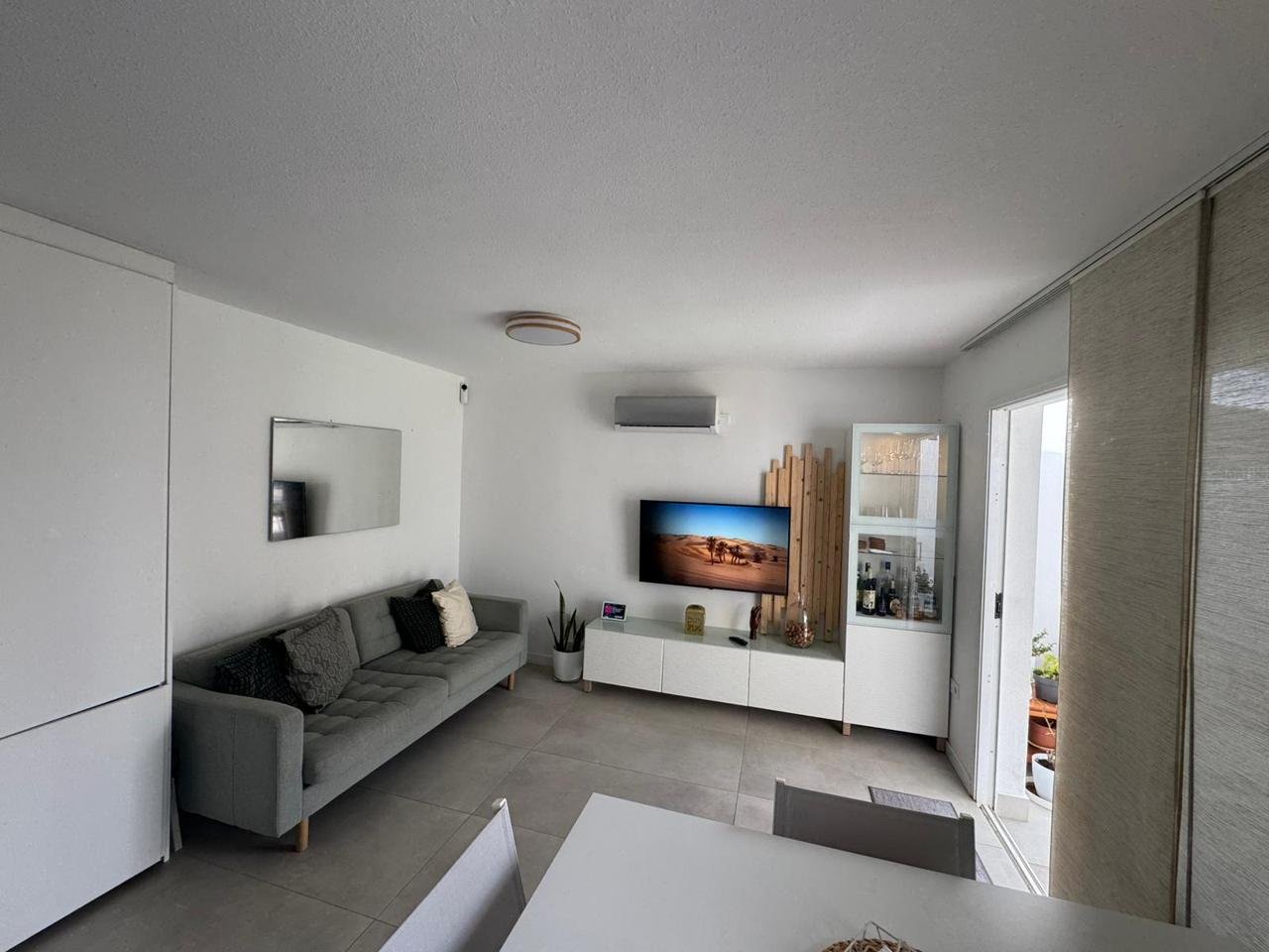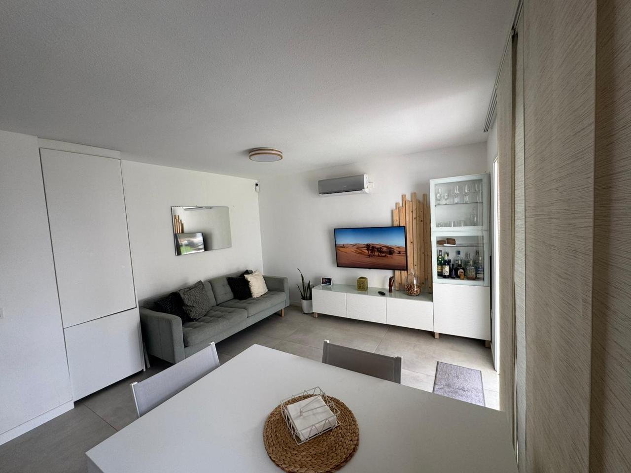 La propiedad cuenta con 2 dormitorios y 2 baños (uno de ellos en suite), cocina abierta totalmente equipada, luminoso salón y una amplia terraza con pérgola bioclimática y zona de comedor exterior. Además, dispone de solárium privado, aire acondicionado en todas las estancias y 2 plazas de aparcamiento frente al apartamento.