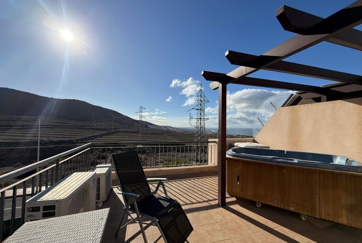 El interior destaca por su diseño elegante y funcional. La vivienda cuenta con cinco dormitorios amplios y tres baños La cocina de diseño, de concepto abierto y completamente equipada, se integra de manera armoniosa en un luminoso salón que conecta directamente con una terraza amplia, un jardín con plantas bien cuidadas que crea una agradable privacidad y vistas impresionantes al mar y a las montañas, que se pueden disfrutar desde las zonas de estar y los exteriores de la casa. Ideal para disfrutar del clima privilegiado de Tenerife durante todo el año.