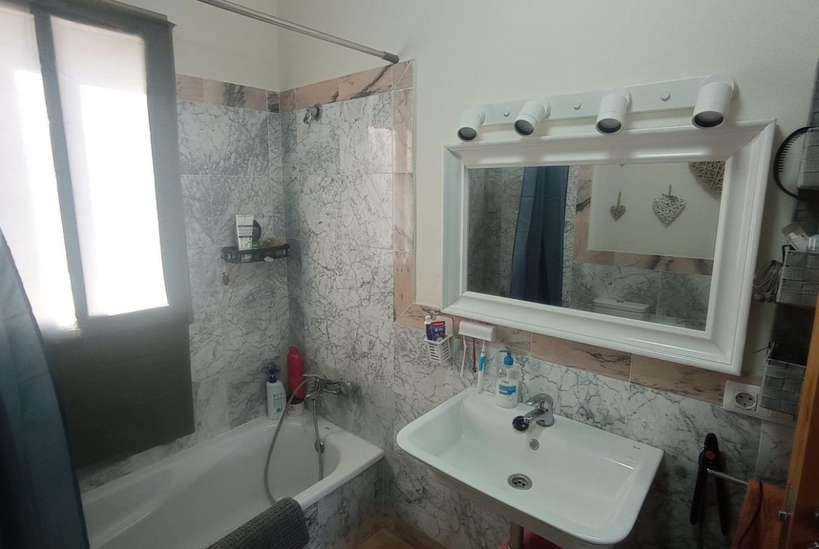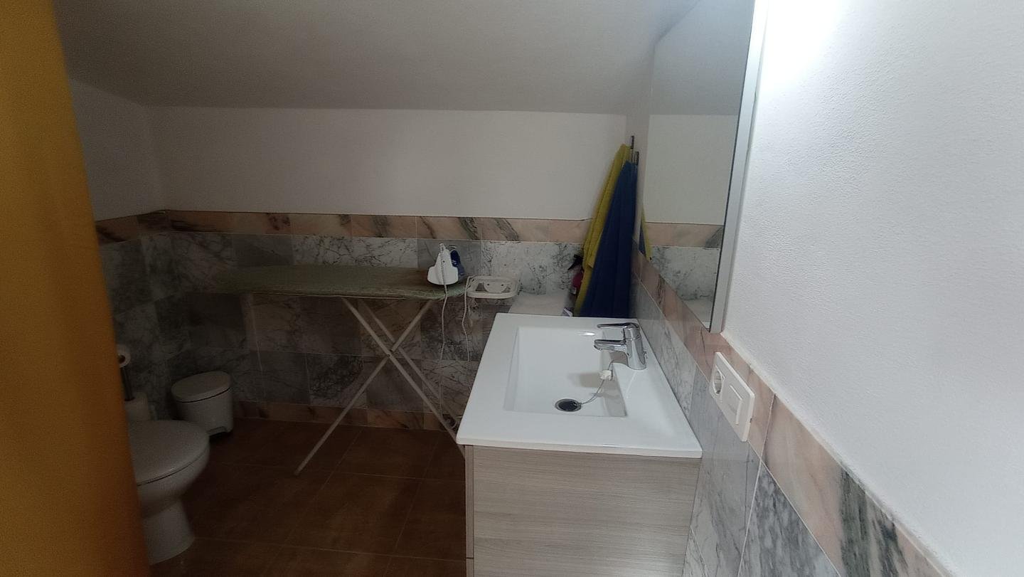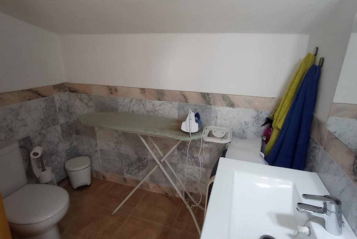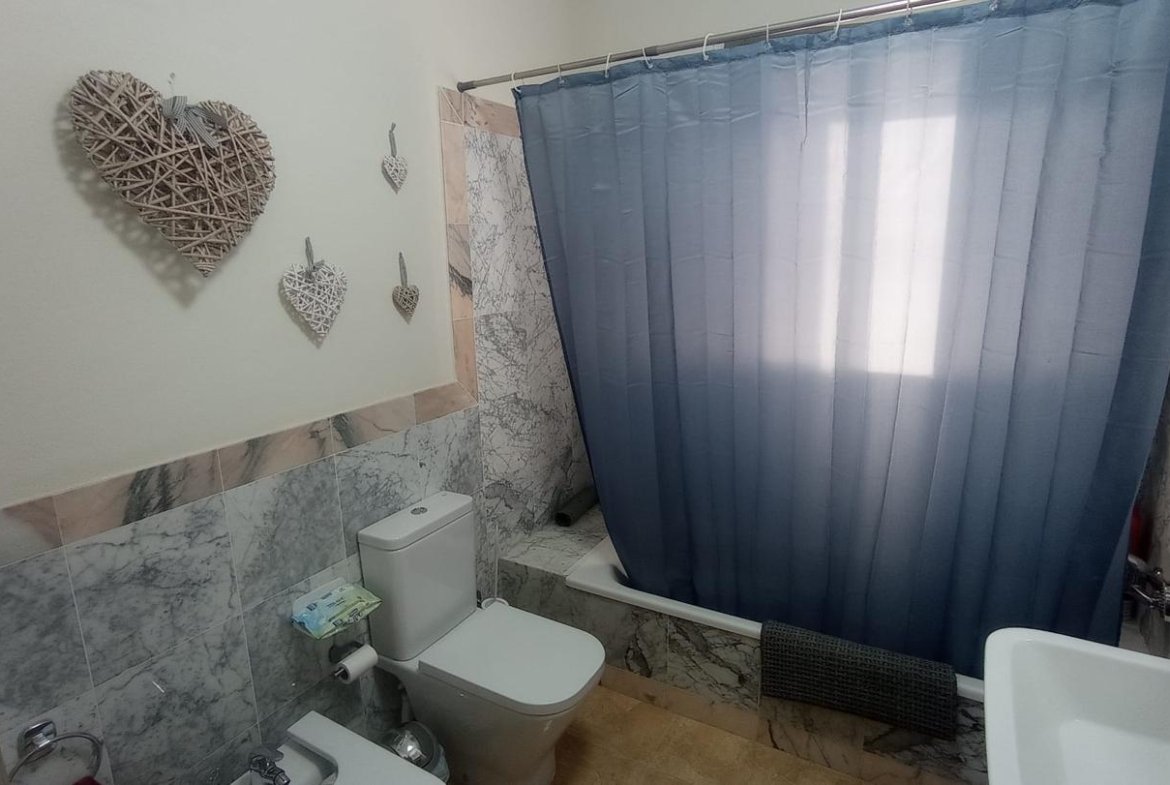 -En la planta superior hay dos dormitorios de buen tamaño, decorados con gusto y un amplio baño de tres piezas con bañera, ideal para relajarse después de un día de trabajo.