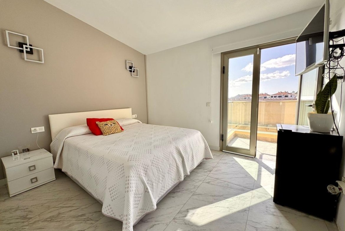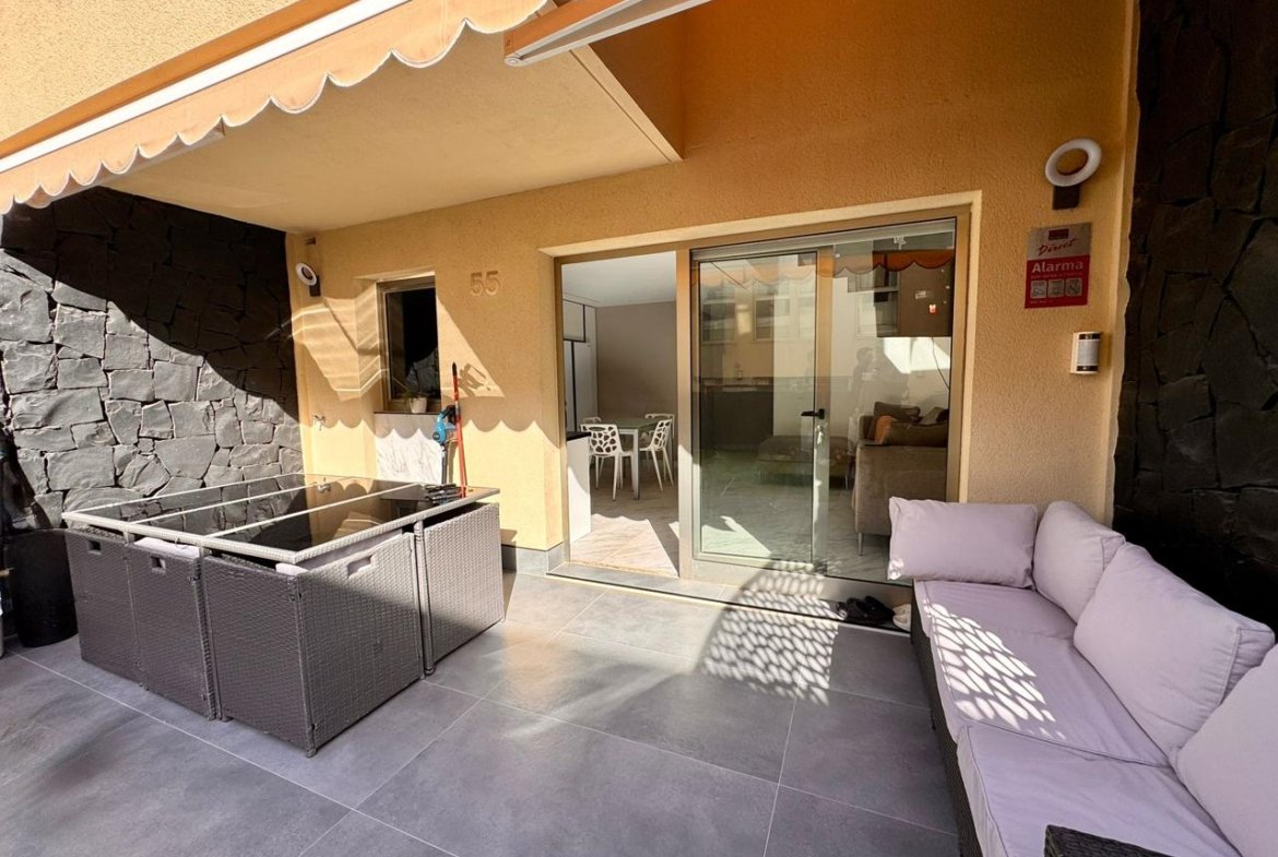 Se vende exclusivo chalet tríplex completamente reformado, situado en el prestigioso complejo Sun Bay Villas, en primera línea de mar, en la zona de Amarilla Golf, al sur de Tenerife.