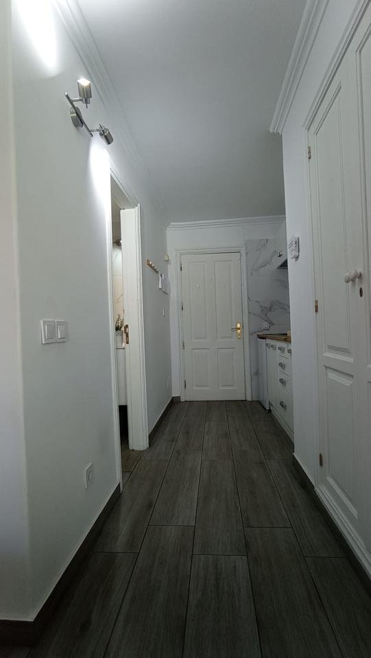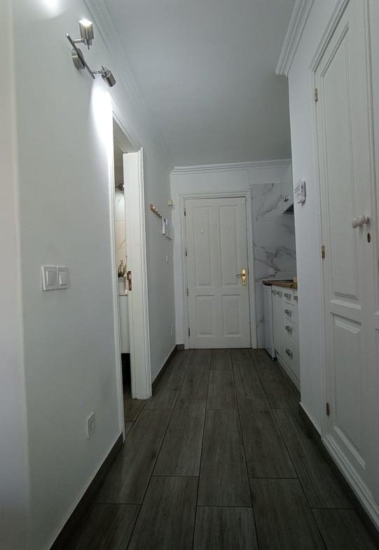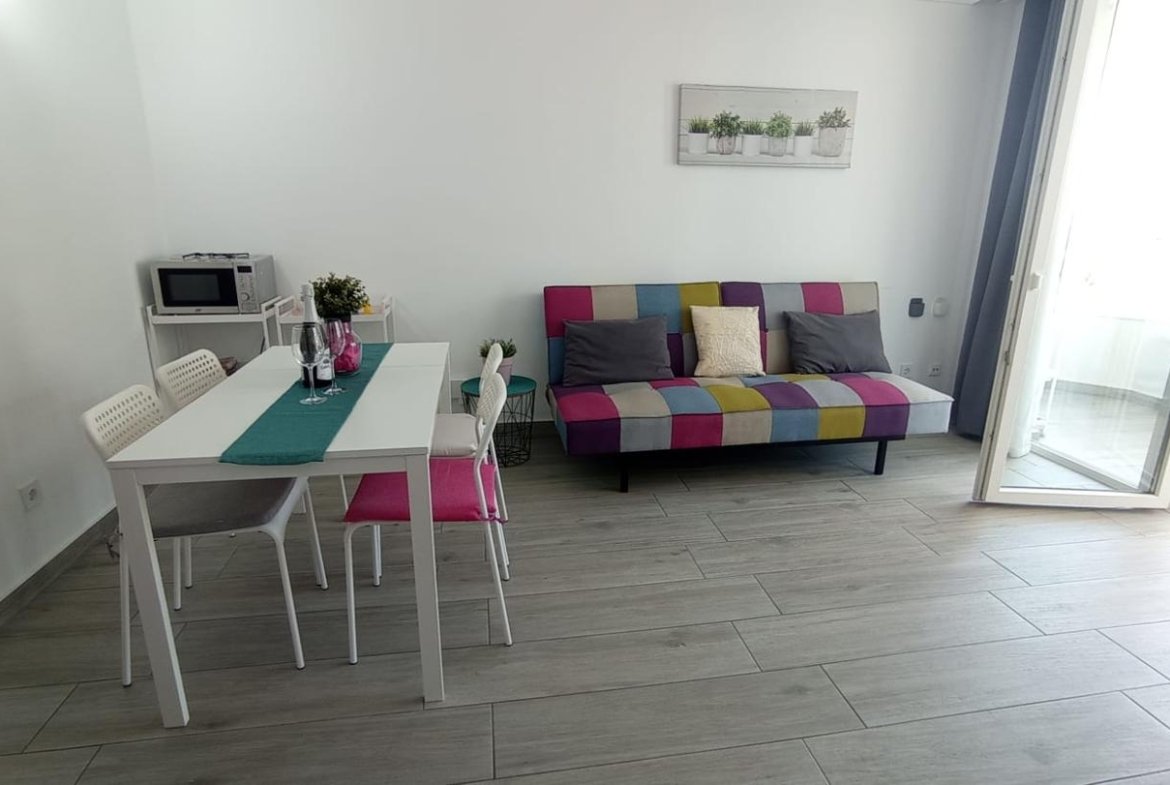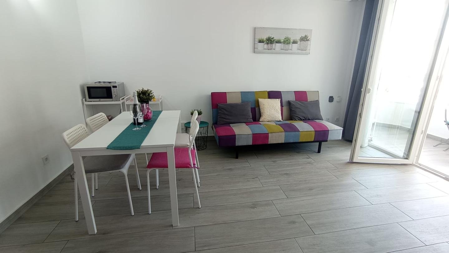 El apartamento es un amplio y luminoso estudio de 40 m2 recién reformado por completo, incluida la instalación eléctrica; consta de salón con cocina totalmente equipada con mesa para 4, cama de matrimonio, sofá cama nuevo, un baño de buen tamaño de estilo moderno con ducha y una terraza de 7 m2 con vista a piscina y jardines. Se vende amueblado.