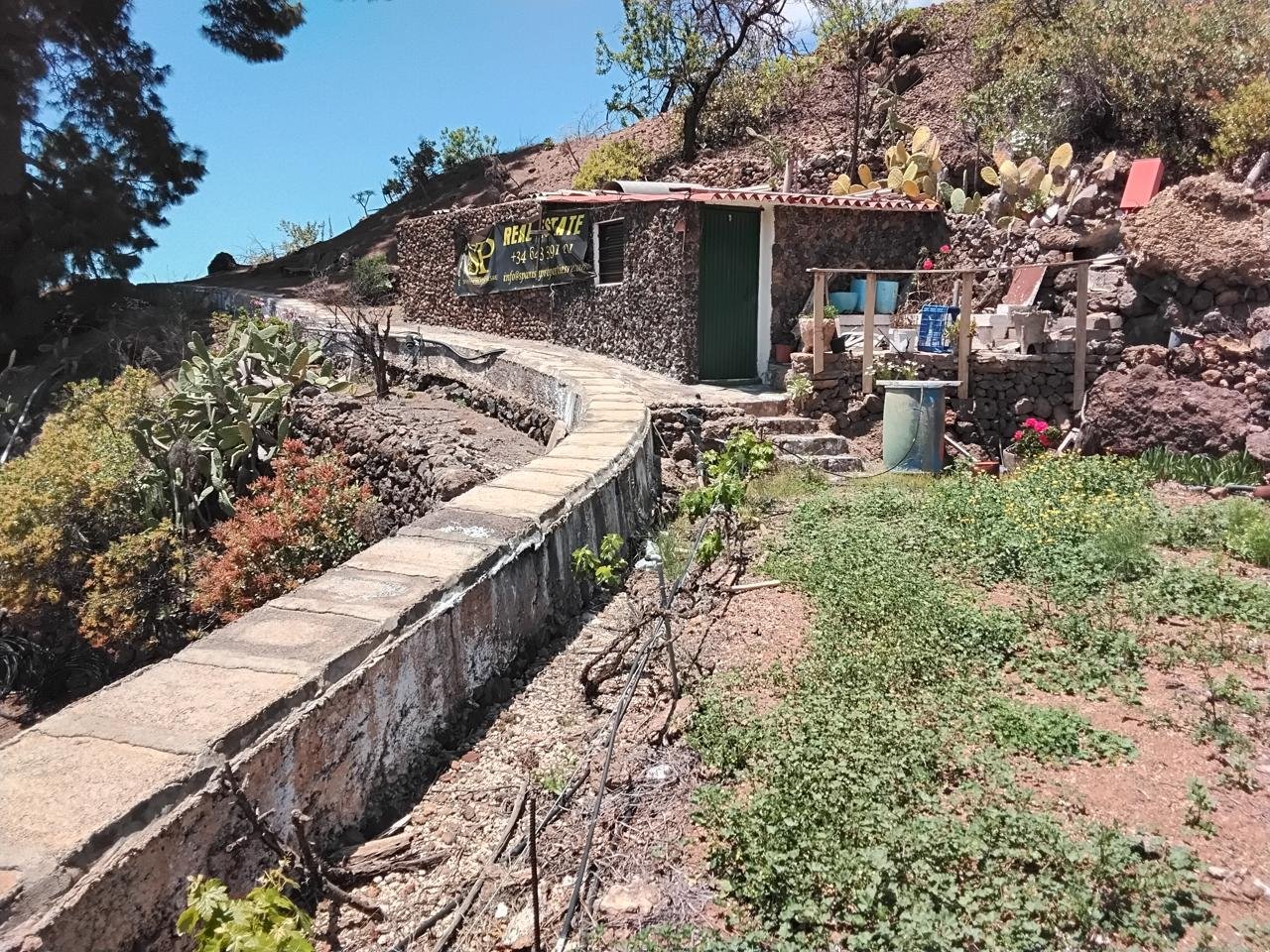 SPANISCHPROPERTIESRE pone a la venta estupenda finca en la subida de las carretera del mirador de circe sobre una altura de 800mt aproximadamente te ofrecemos estas espectaculares finca rústica de 4350 m2 con dos acciones de agua una estas actualmente alquilada con un beneficio anual de 800 euros aproximadamente ! Esta finca, que ha estado sin trabajarse debido a la edad avanzada de su propietario, cuenta con un tanque de agua construido en el años 1953 de 43m² y un cuartos de aperos de 40² se puedes convertir en 1 baño, 1 dormitorios , cocina y terraza con vistas al mar aportando un proyecto en el ayuntamiento como vivienda uso cultivo Agrario. actualmente hay un limonero, uvas 🍇 almendros y se puedes cultivar también papas calabacín ciruelas papaya cebolla y mucho más con un terreno muy fértiles y generoso. Situado en las carretera general subiendo al mirador de circe con facilitad de entrada sea para coches sea con caravana y camiones .En el interior del cuarto de aperos hay tuberías de aguas, con grifo .facilitando en ponerse placas solares y disfrutar de la naturaleza. Non lo dudes llámame para concretar una cita .