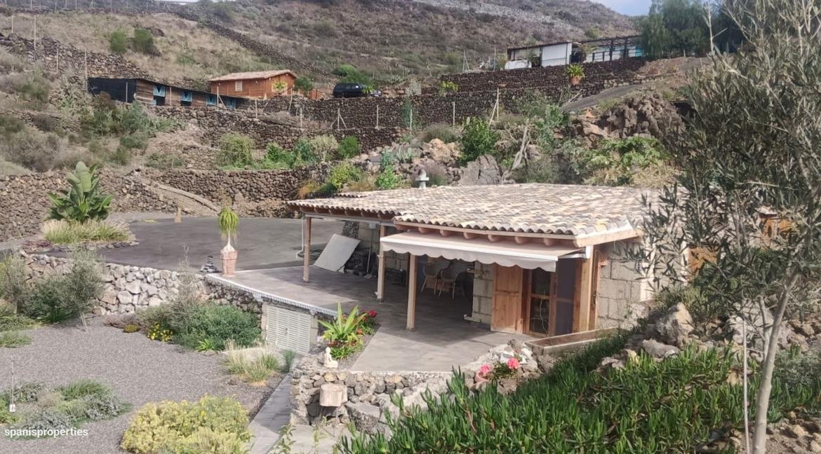 Esta impresionante finca se encuentra ubicada en el encantador Municipio de Guía de Isora, específicamente en el pueblo de Chío, Santa Cruz de Tenerife. Cuenta con cuatro viviendas construidas, incluyendo una cabaña de 3 dormitorios con una fabulosa terraza con vistas al mar y una cueva convertida en salón. También dispone de otra cabaña de madera de 3 dormitorios y 1 baño, y en la parte baja de la finca, hay otra vivienda con 2 dormitorios, 1 baño amplio, un espacioso salón y una estupenda terraza con vistas a La Gomera.