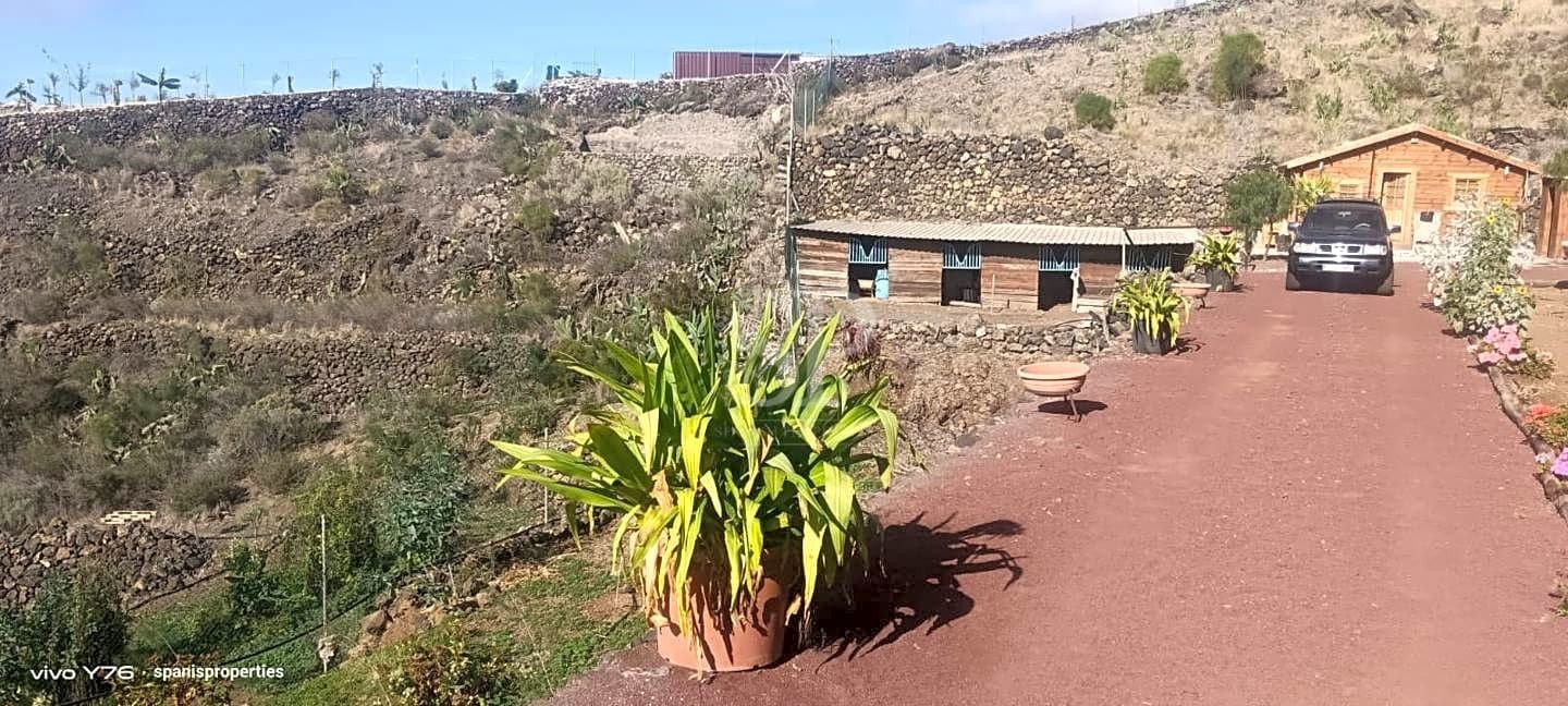 Esta maravillosa finca está situada a una altura de 650 metros sobre el nivel del mar. Actualmente, cuenta con una variedad de árboles frutales como papaya, limonero, almendro, plátano, mango y 80 plantas de olivo. La finca dispone de energía solar y suministro de agua propia. Además, la propiedad está protegida por cámaras de seguridad las 24 horas. Toda la documentación está legalizada y al día. La finca tiene un exclusivo acceso privado en medio de la naturaleza. – Testing: | 28.24034172, -16.800242318
