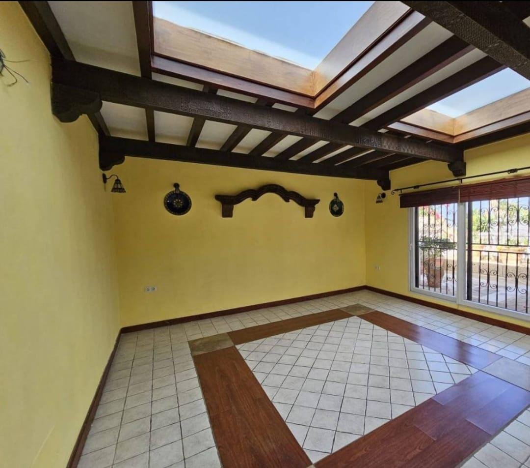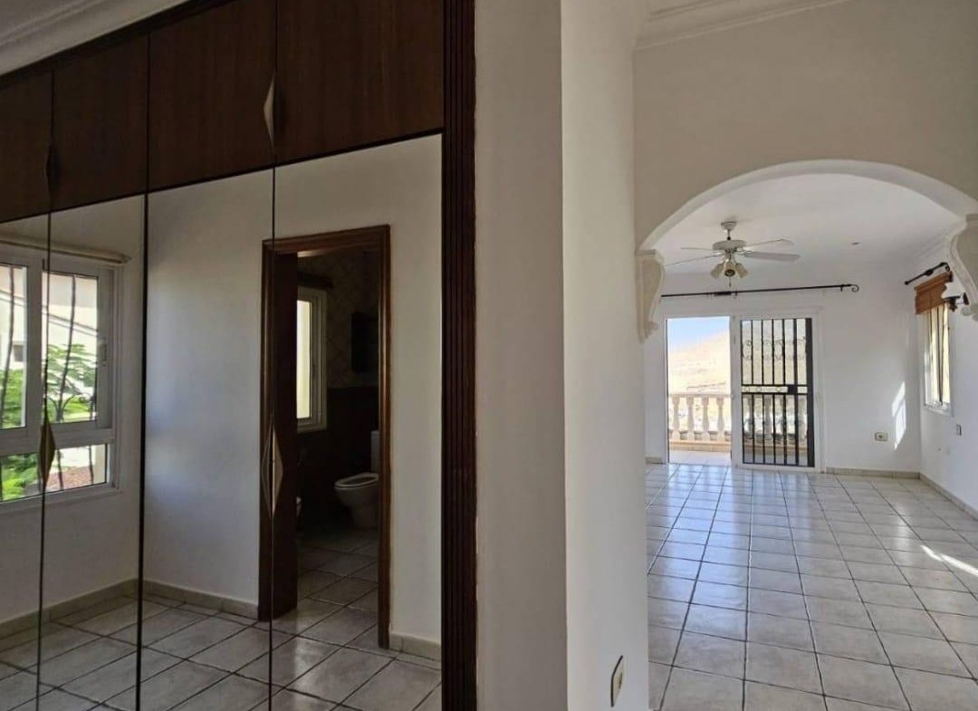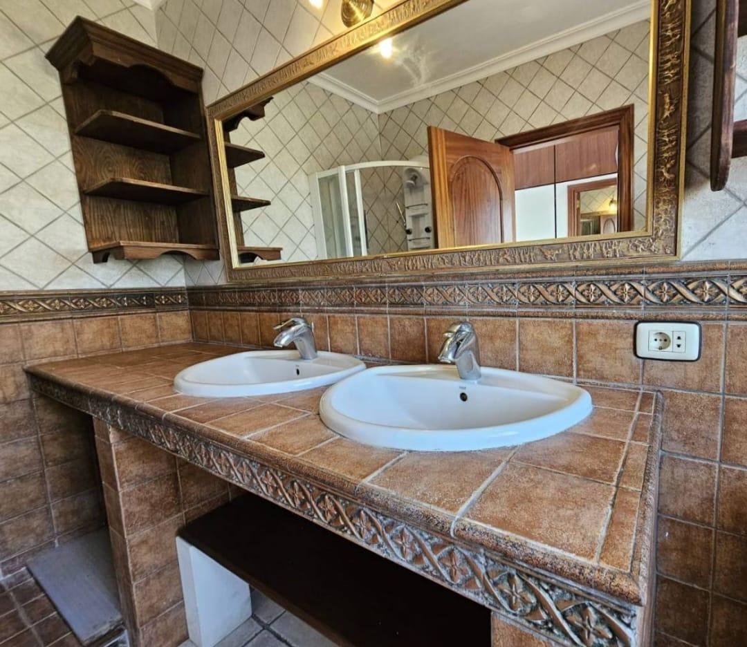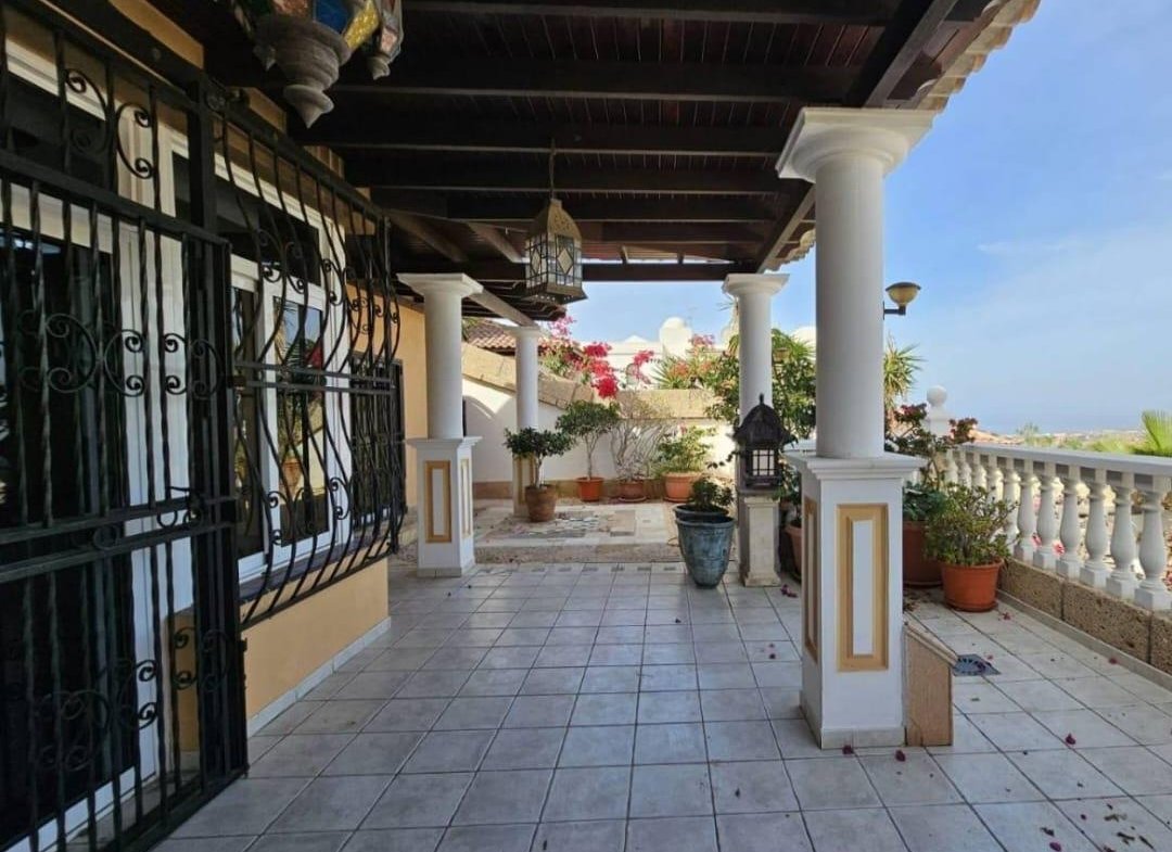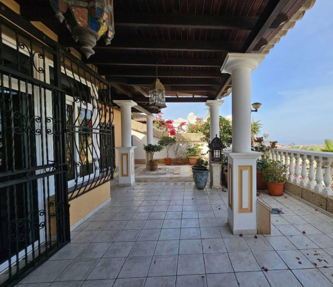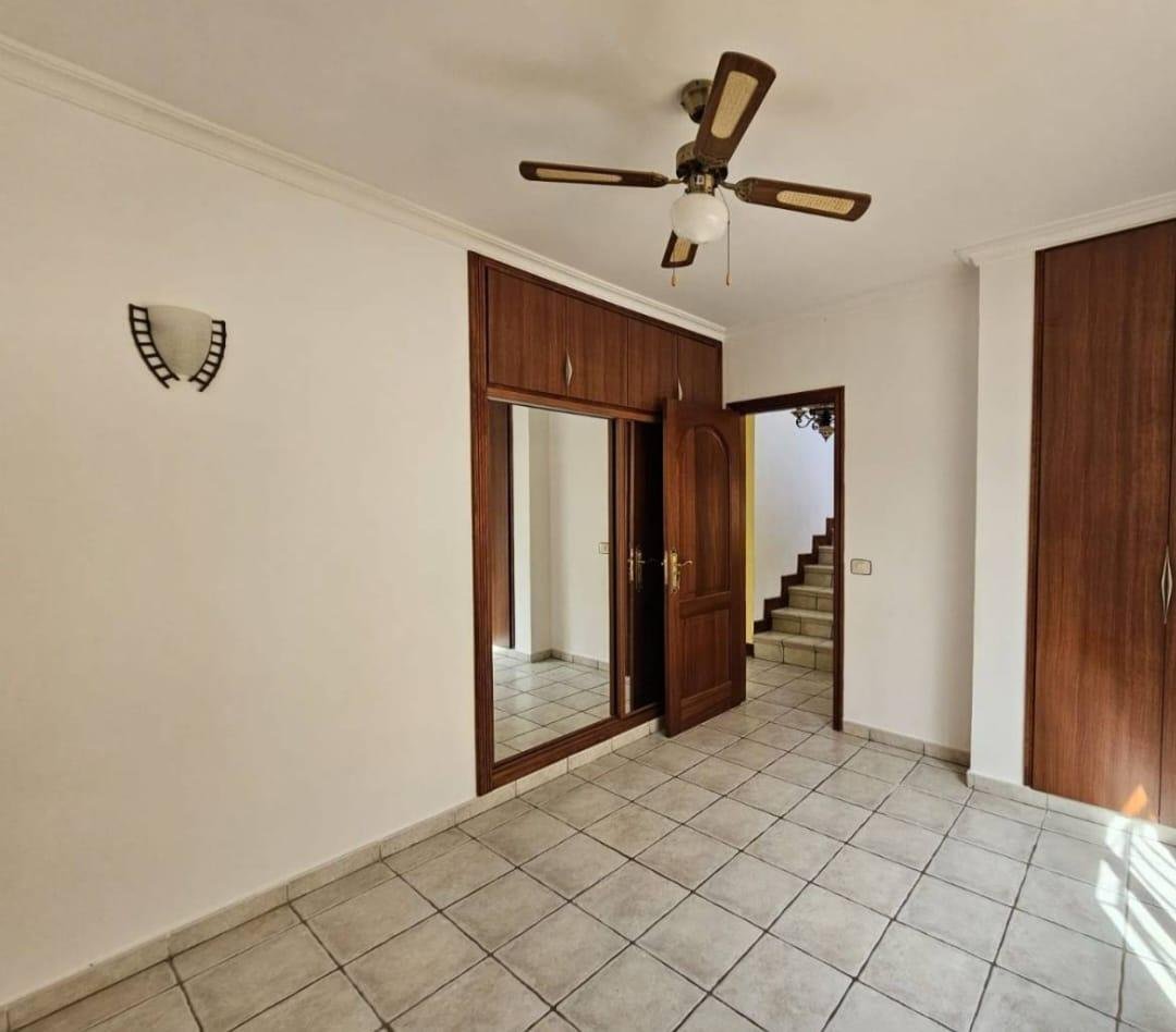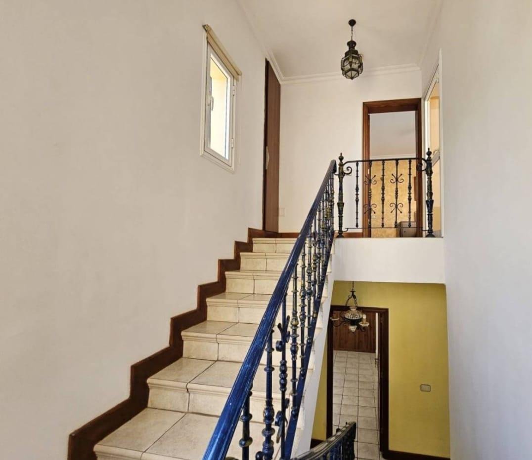 En venta casa independiente de 351 m2 en la zona de Roque del Conde. Se encuentra rodeada de jardines a diferentes niveles, y en una de las terrazas la piscina. Entrando a la vivienda tenemos un pequeño recibidor a mano derecha, el salón con salida a una terraza con vistas despejadas, donde se puede ver la zona ajardinadas y la piscina. Este salón está comunicado con el comedor. Justo en frente de la puerta de entrada, la cocina muy amplia y con una zona de almacenaje, está comunicada con el comedor. Bajamos una planta y tenemos una zona amplia de espacio de almacenaje y otra al lado aprovechando el hueco de la escalera, y un aseo que comparte con la planta principal. Vamos subiendo a la siguiente planta y ya a en esta tenemos dos dormitorios amplios con armarios empotrados y un baño completo. Subimos otro piso más dormitorio principal con baño en suite y zona de vestidor, que tiene salida a una terraza que lo bordea completamente. Siguiente planta otro dormitorio amplio con armarios y baño en suite, desde donde accedemos a la planta de azotea con vistas despejadas.