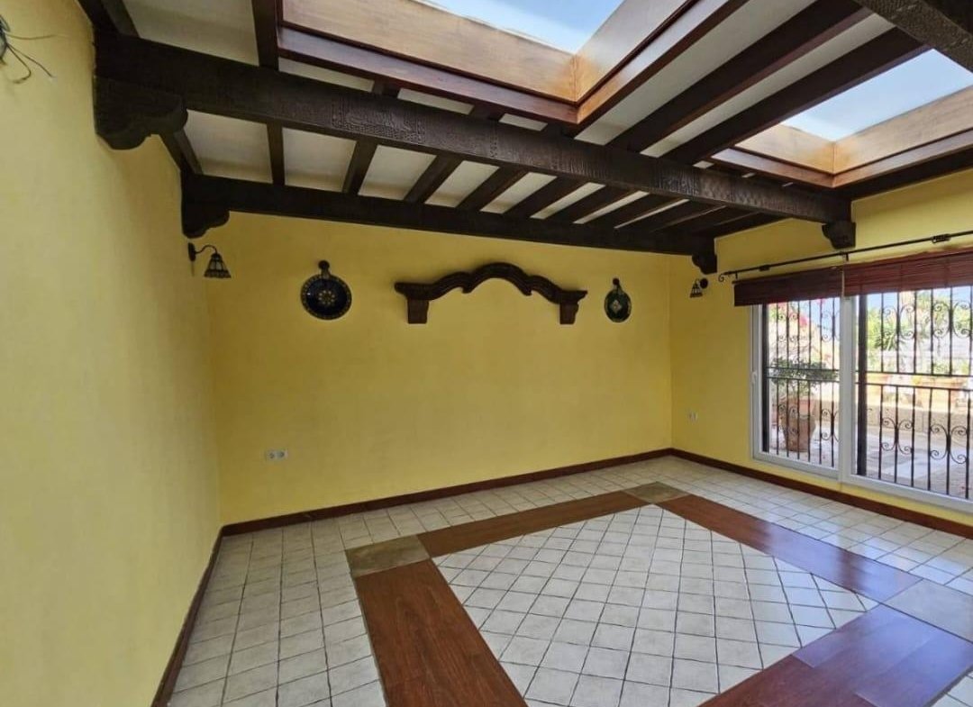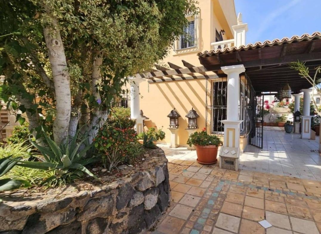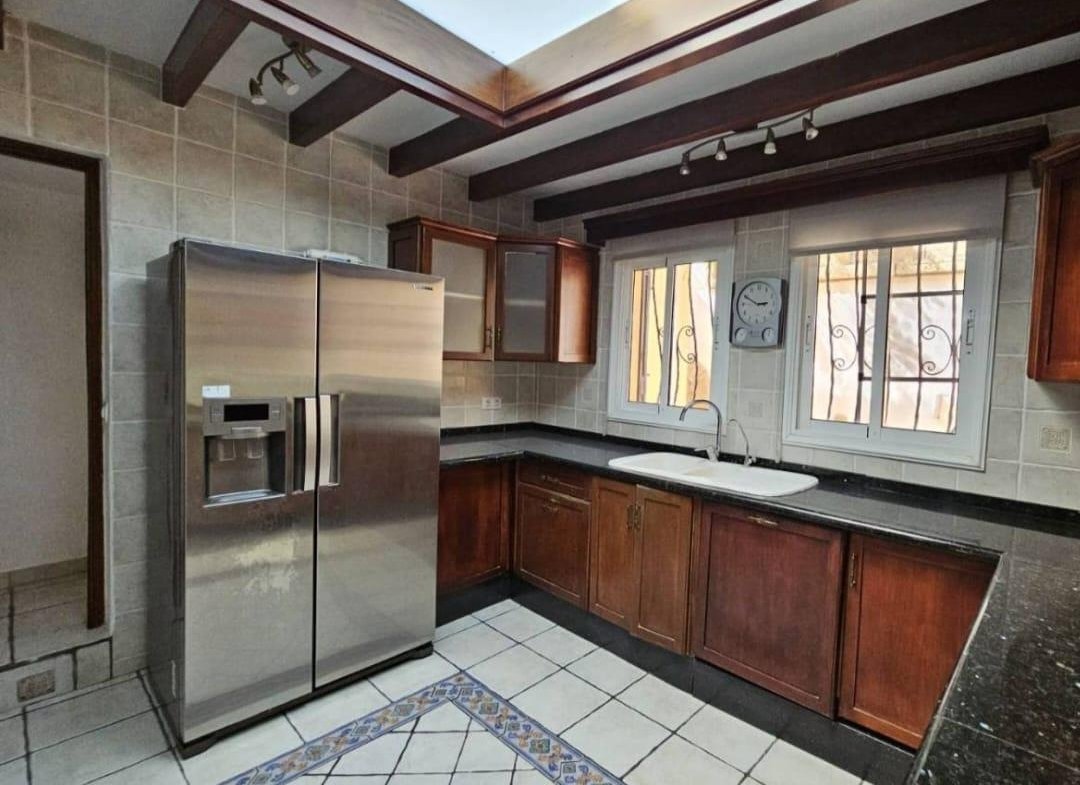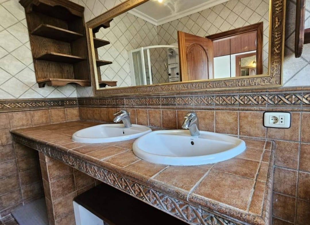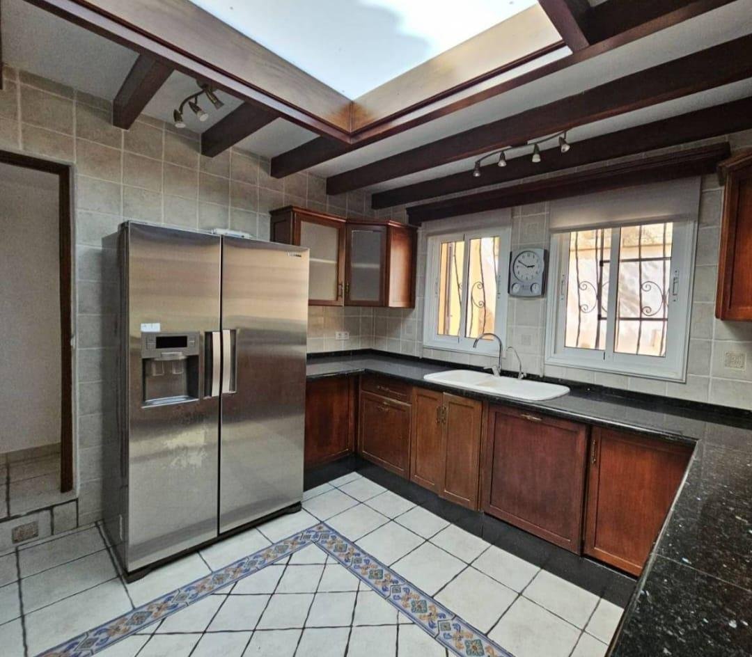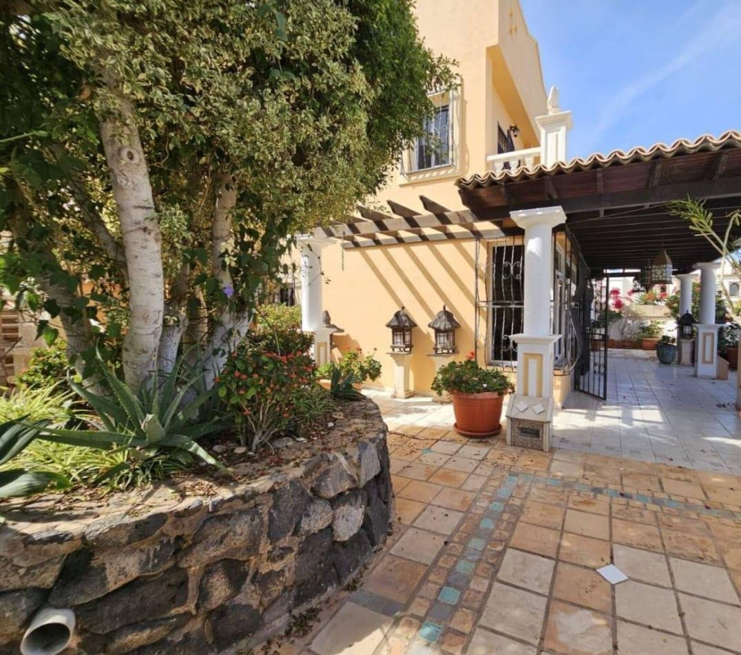 En venta casa independiente de 351 m2 en la zona de Roque del Conde. Se encuentra rodeada de jardines a diferentes niveles, y en una de las terrazas la piscina. Entrando a la vivienda tenemos un pequeño recibidor a mano derecha, el salón con salida a una terraza con vistas despejadas, donde se puede ver la zona ajardinadas y la piscina. Este salón está comunicado con el comedor. Justo en frente de la puerta de entrada, la cocina muy amplia y con una zona de almacenaje, está comunicada con el comedor. Bajamos una planta y tenemos una zona amplia de espacio de almacenaje y otra al lado aprovechando el hueco de la escalera, y un aseo que comparte con la planta principal. Vamos subiendo a la siguiente planta y ya a en esta tenemos dos dormitorios amplios con armarios empotrados y un baño completo. Subimos otro piso más dormitorio principal con baño en suite y zona de vestidor, que tiene salida a una terraza que lo bordea completamente. Siguiente planta otro dormitorio amplio con armarios y baño en suite, desde donde accedemos a la planta de azotea con vistas despejadas.