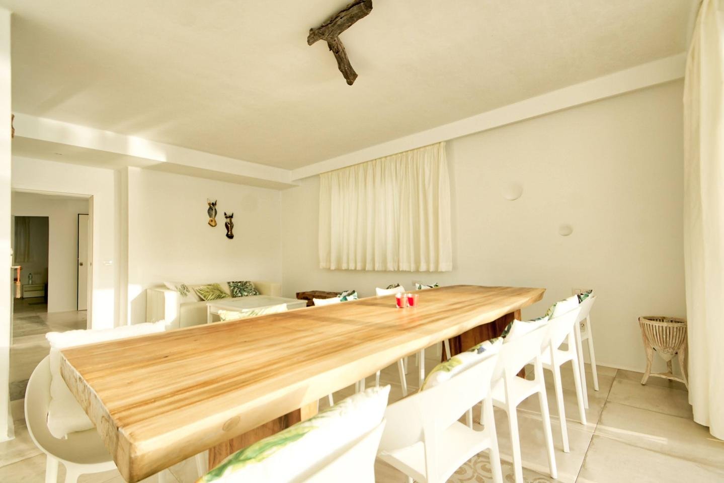 La planta baja da acceso a la piscina y su bar privado, zona de barbacoa. El salón es muy amplio y luminoso, la cocina está totalmente equipada.